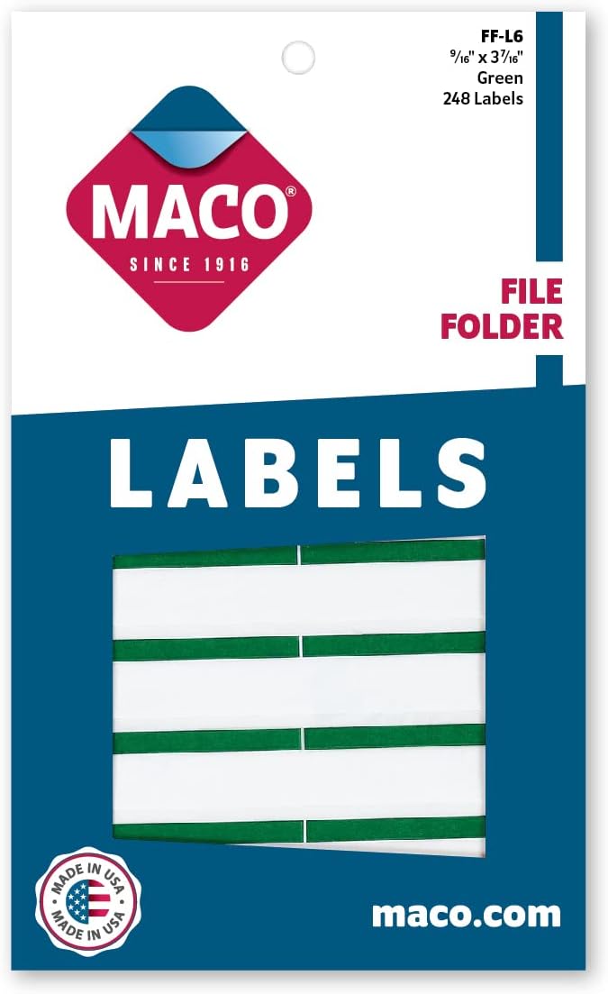 / Maco File Folder Labels Green Pk/248