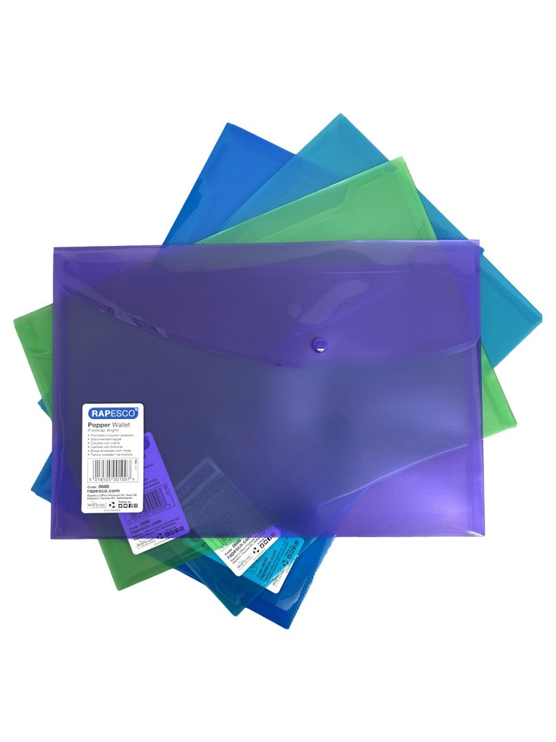/ Rapesco Popper Wallet Foolscap Solid Assorted Col