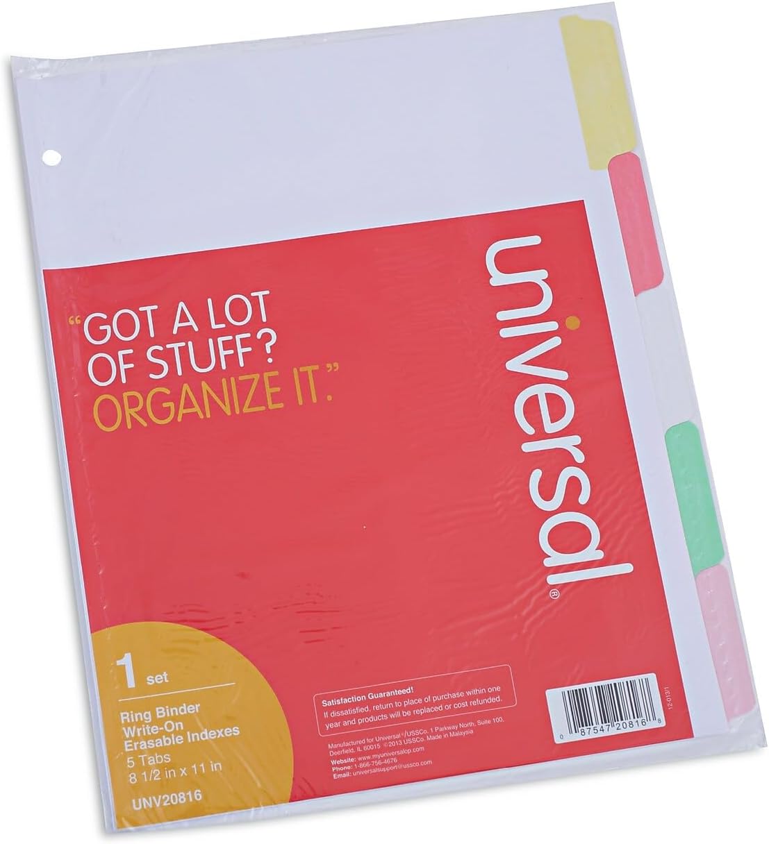 / Unv Write On 5 Tab Indexes Color